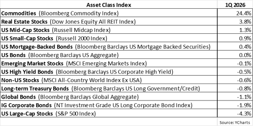 In fact, after years of being a perennial top performer, US large-cap stocks found themselves among the worst-performing asset classes in the first quarter. The S&P 500 suffered its worst start to a year since 2022, declining -4.3% — a stark reversal from the Index's dominant run.